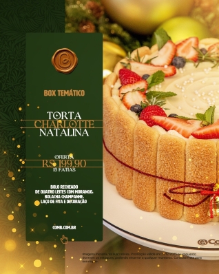 Torta Charlotte Massa pão de ló, com recheio de creme de 4 leites e morangos frescos picados. Envolto com bolacha champanhe. Lindamente decorada com morangos e flores. Imagem meramente ilustrativa. |