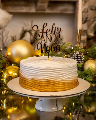 bolo dois amores com decoração especial de ano novo e topper dourado 15 fatias |