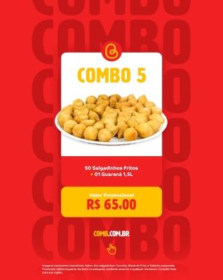 50 salgadinhos (coxinha, risoles de frios e salsicha empanada) + guaraná 1,5L.